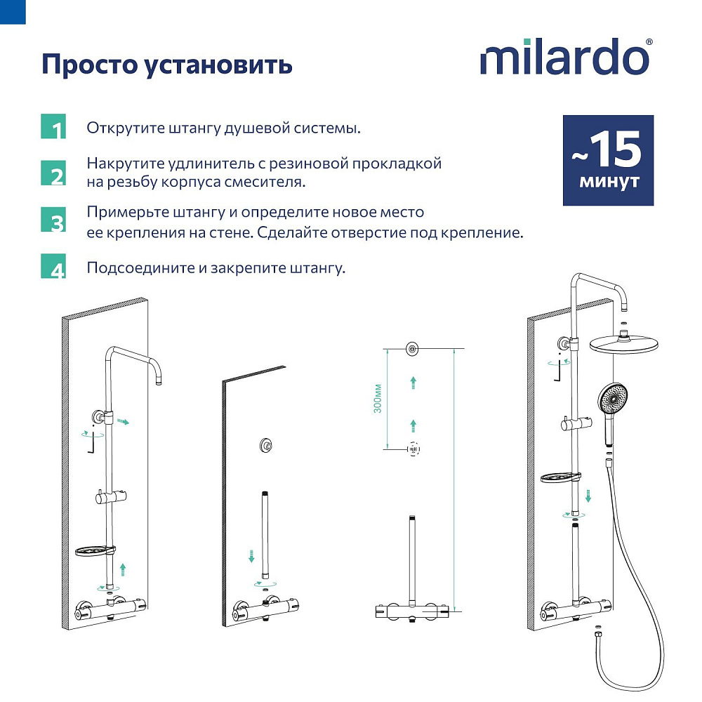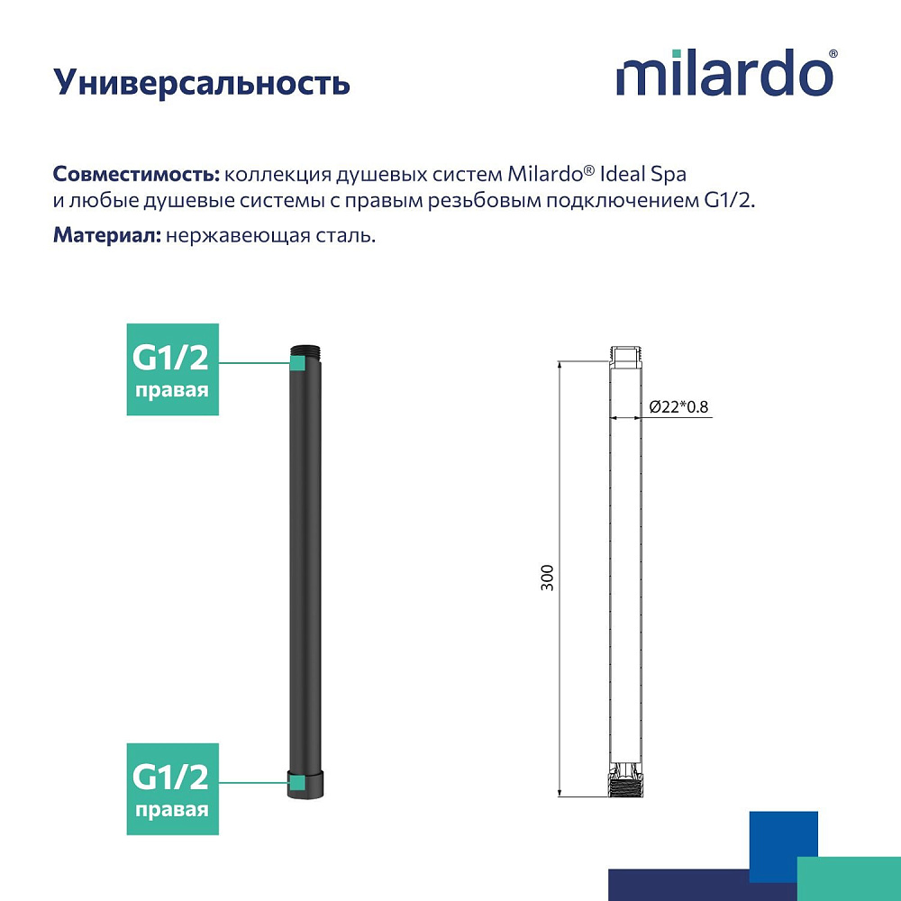 Отзывы о Удлинитель штанги для душевой системы, круглый, черный матовый, Milardo, Ideal Spa, ILS30BRM38