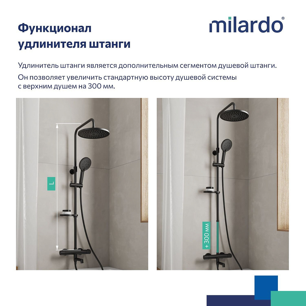 Удлинитель штанги для душевой системы, круглый, черный матовый, Milardo, Ideal Spa, ILS30BRM38