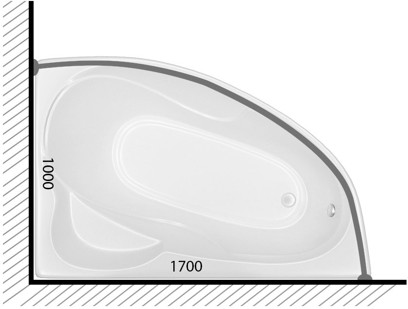 Угловой карниз для ванны Triton Изабель Щ0000052811 170x100 см, дугообразный, глянцевый хром