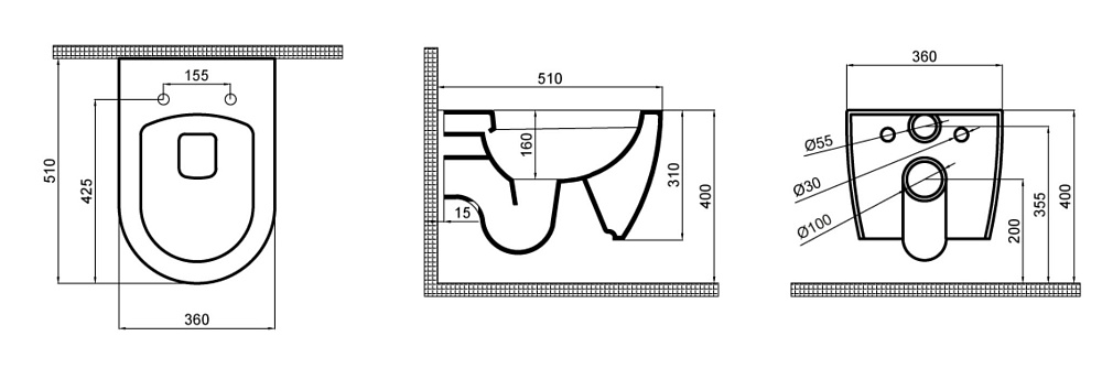 Cкрытый фановый выход обеспечат эстетическую чистоту, а грязеотталкивающее покрытие и отсутствие ободка гарантирует идеальную чистоту благодаря отсутствию в чаше областей, недоступных для уборки.
