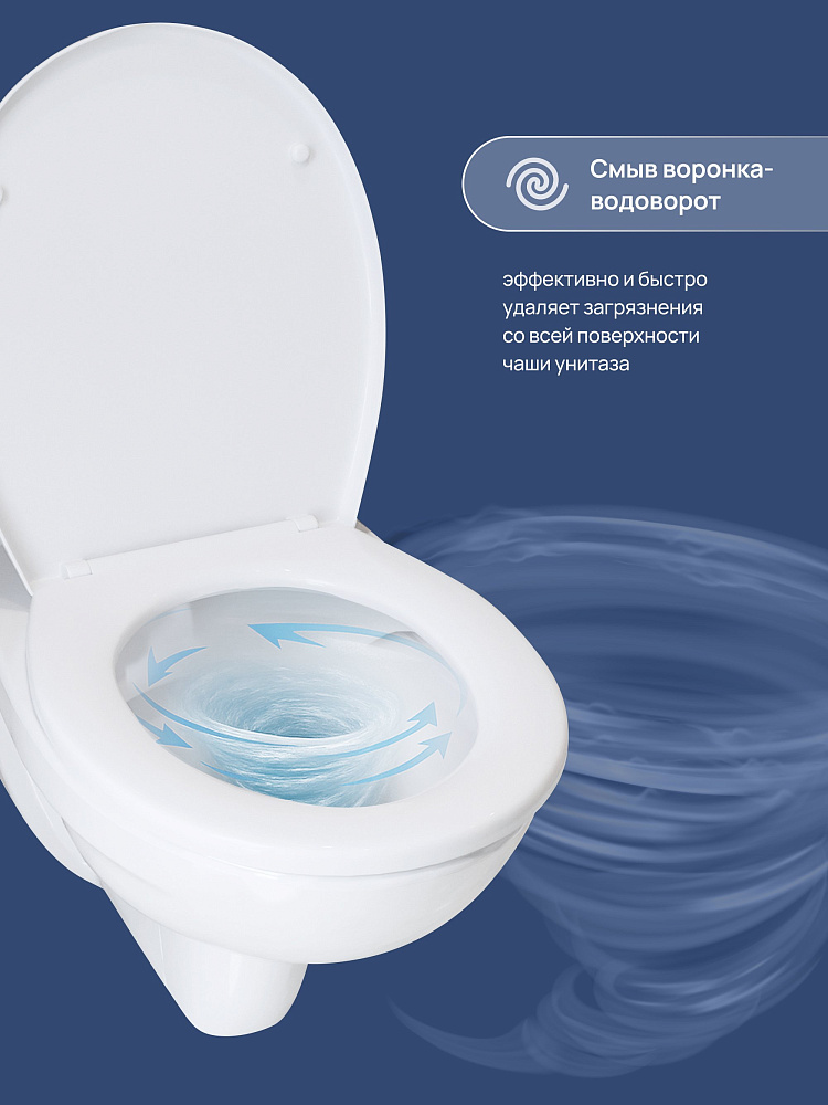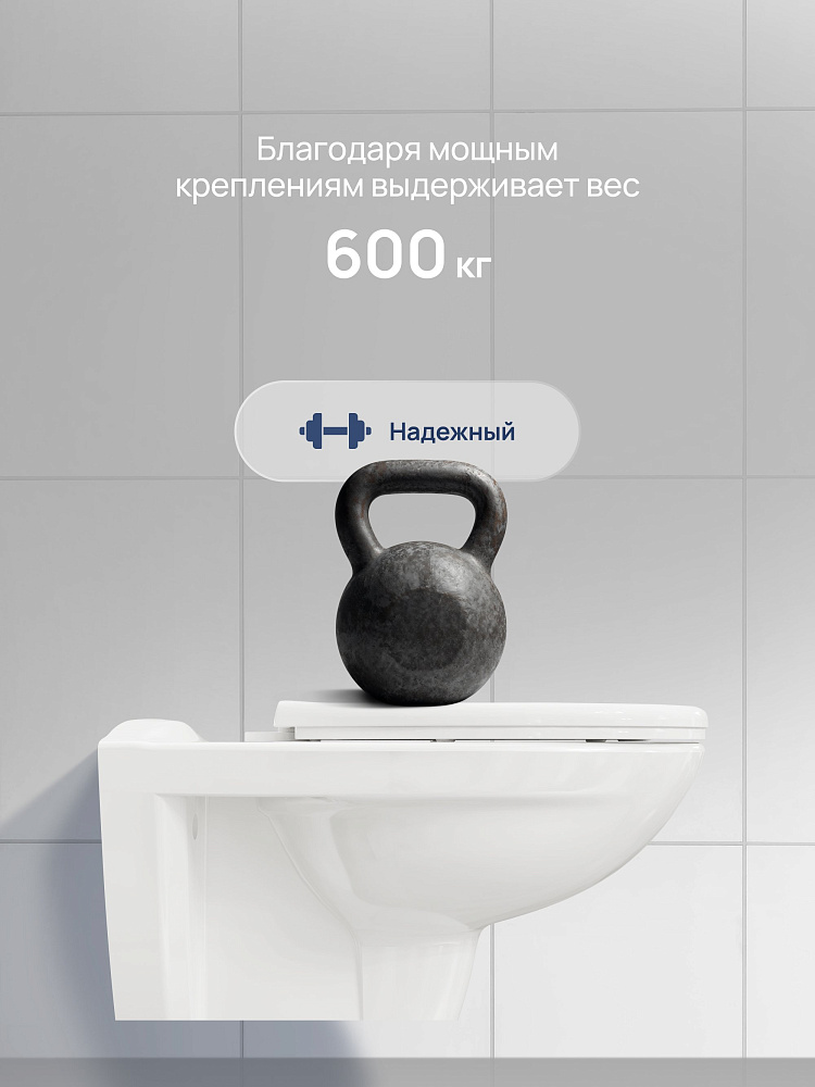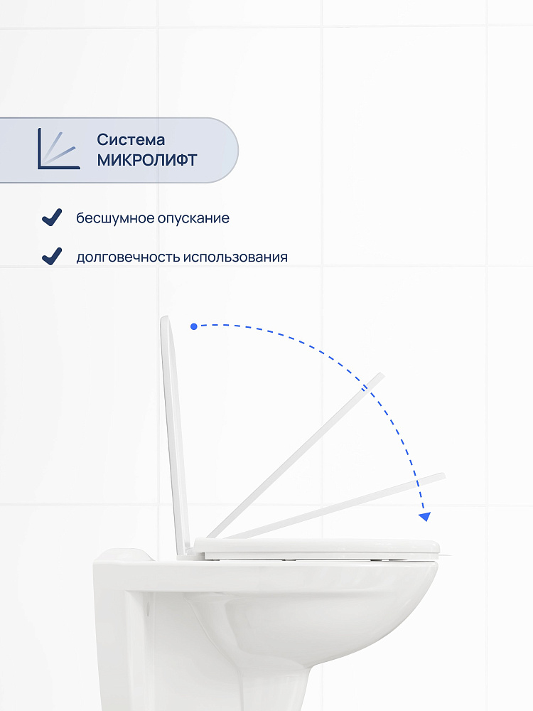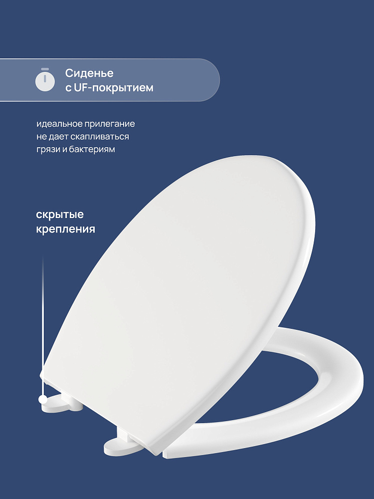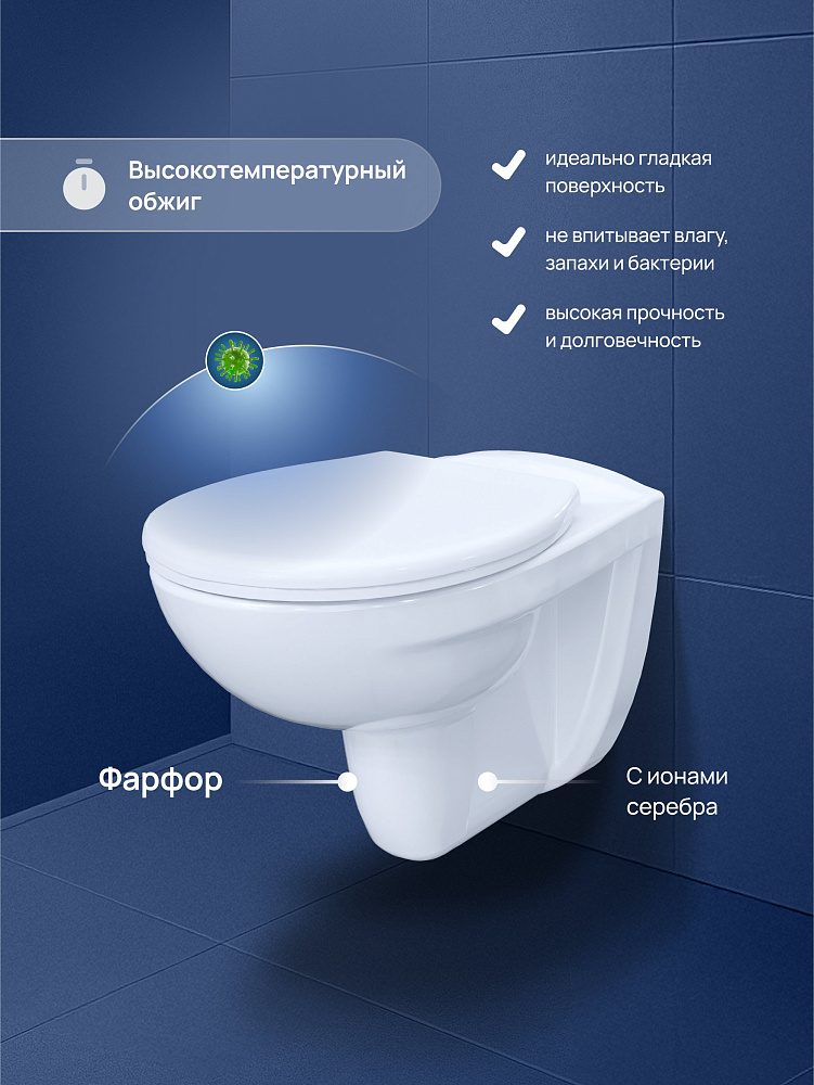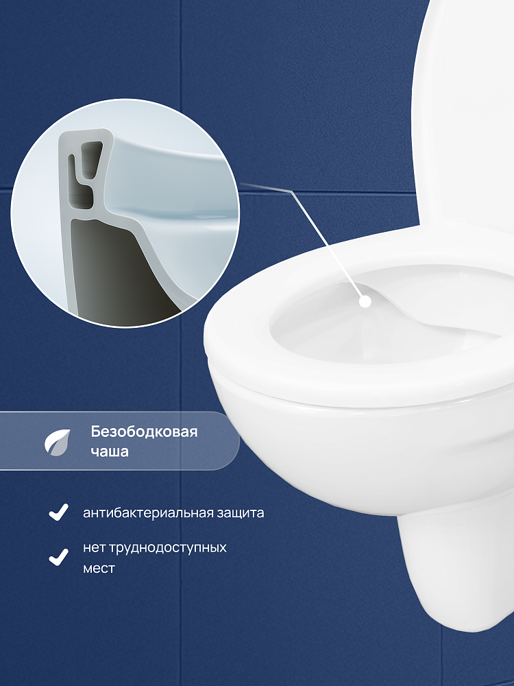Модель имеет горизонтальное направление выпуска. Чаша отшлифована в местах присоединения к стене, что обеспечивает ее идеальное прилегание. Еще один плюс такой конструкции — по бокам унитаза нет технологических выемок для крепления, поэтому исключено скопление пыли и грязи. В комплекте сиденье из термопласта с особым UF-покрытием, которое со временем не пожелтеет. Унитаз российского производства с гарантийным сроком 10 лет.
