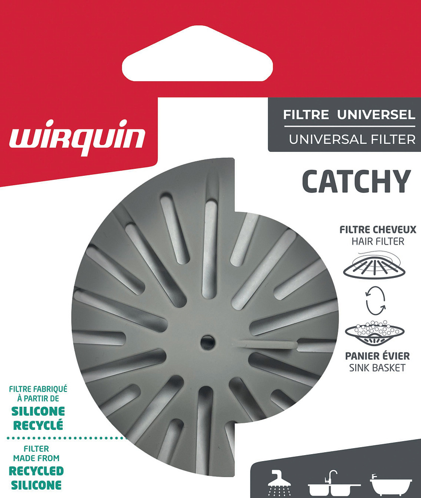 Изготовленный из качественного силикона, фильтр CATCHY WIRQUIN легко и надежно фиксируется на сливе, предотвращая попадание в водопровод мелких предметов, волос и других загрязнений. Благодаря своей универсальной форме, он подходит для любого размера слива и легко очищается от накопившихся отложений.
