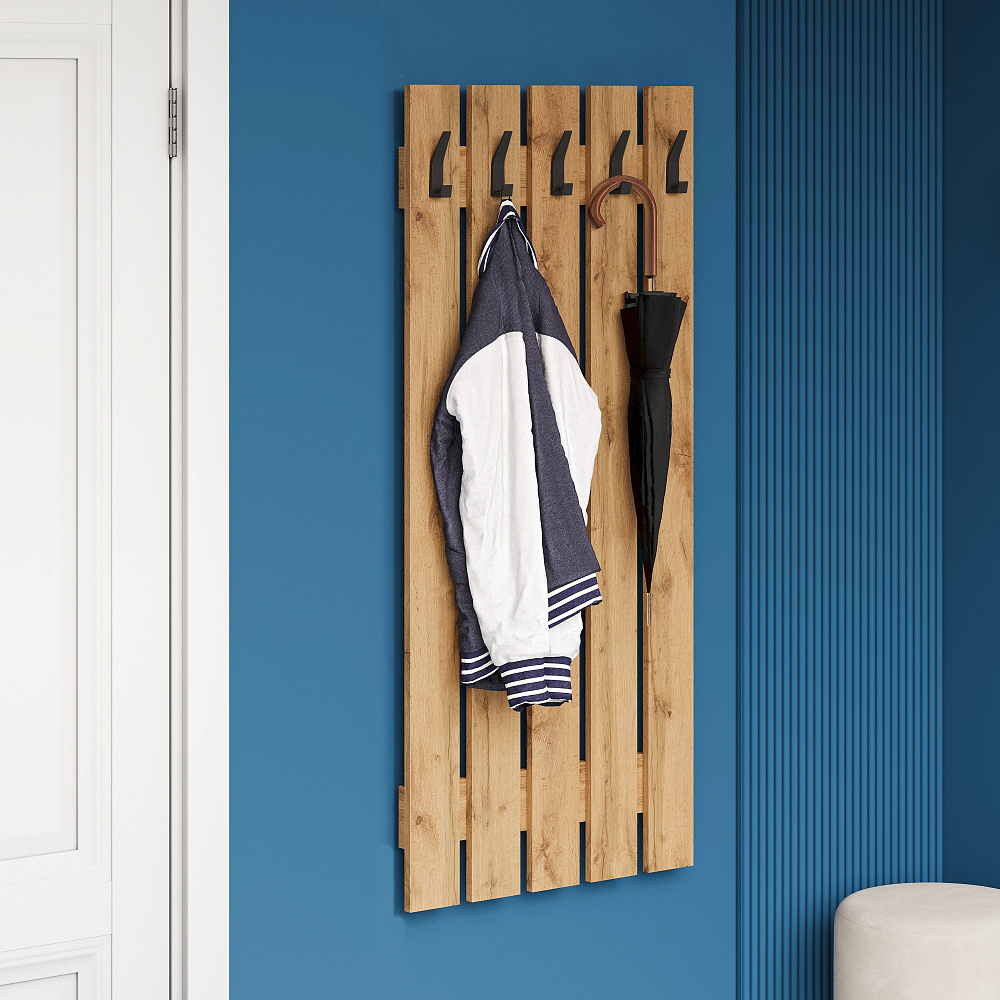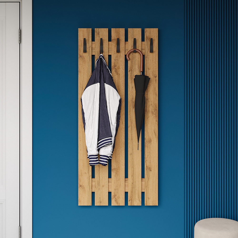 Вешалка для одежды DIWO Кострома 60x135 см без полки, дуб вотан, крючок черный