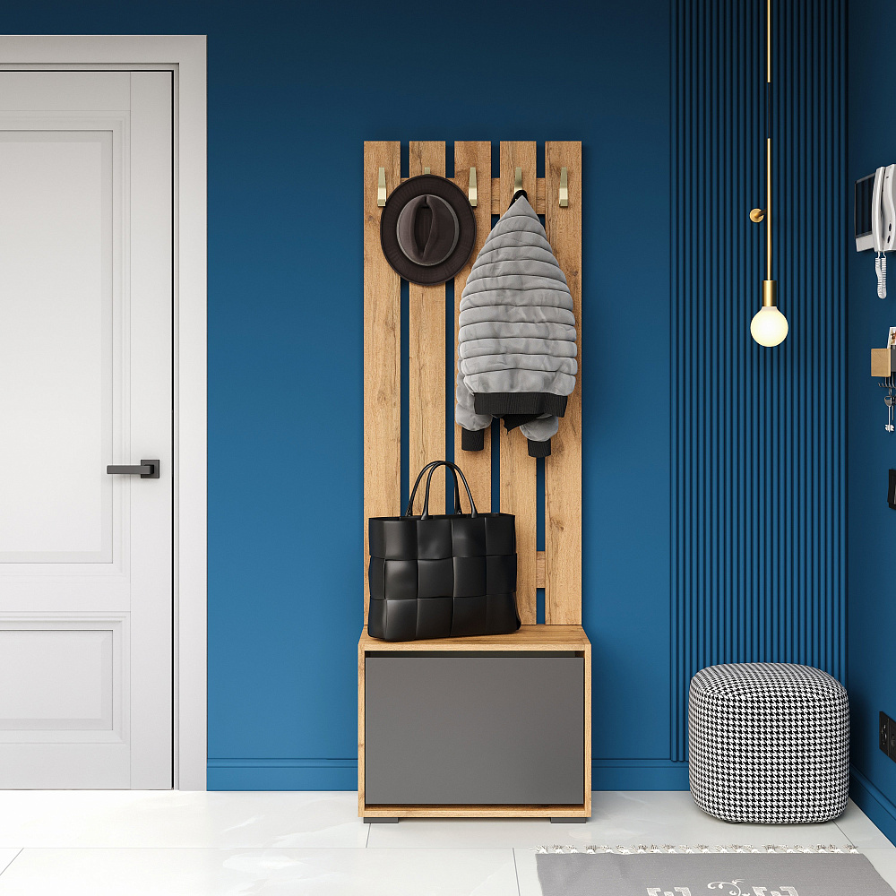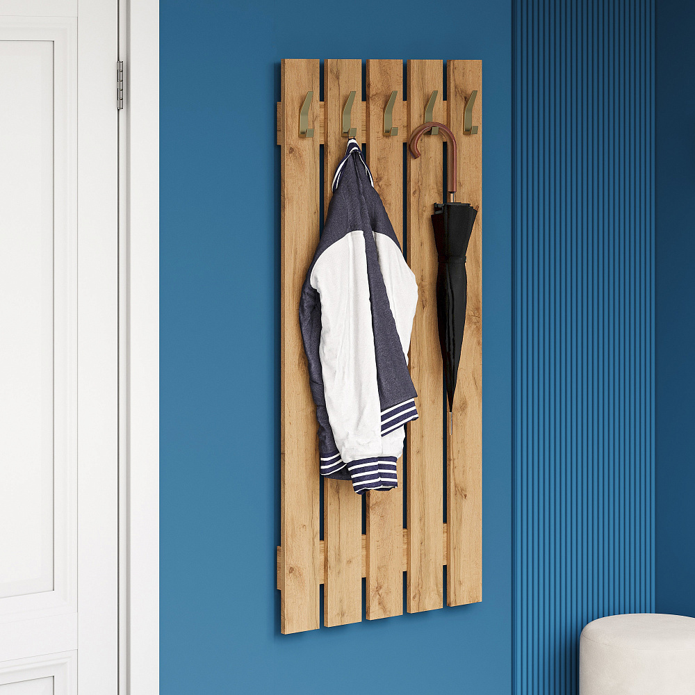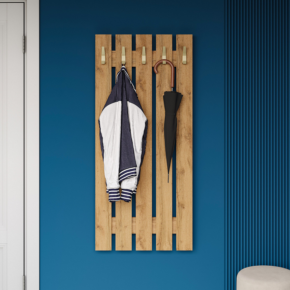 Вешалка для одежды DIWO Кострома 60x135 см без полки, дуб вотан, крючок золото