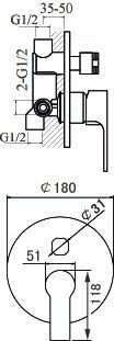 Встраиваемый смеситель для душа и ванны Aquanet Classic ARF5042-K(T) С ВНУТРЕННЕЙ ЧАСТЬЮ