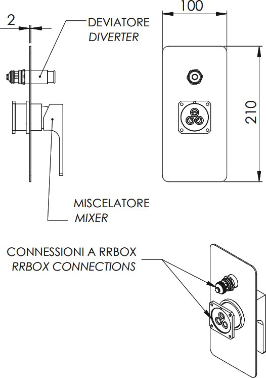Встраиваемый смеситель для душа и ванны Remer Absolute AU09KBNO С ВНУТРЕННЕЙ ЧАСТЬЮ, черный матовый