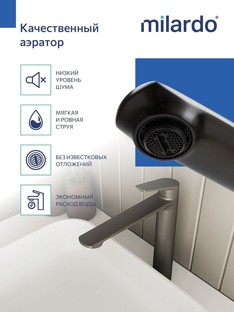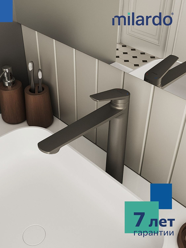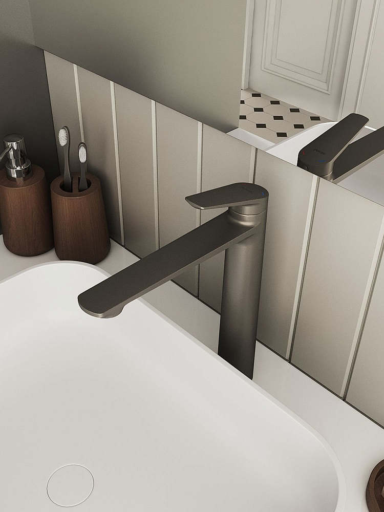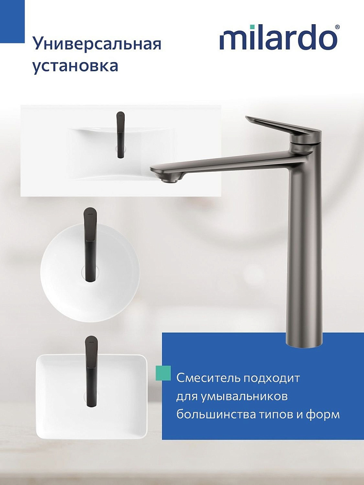 Высокий смеситель для накладной раковины, графит, Milardo, Лип (Leap), LEAGM01M01