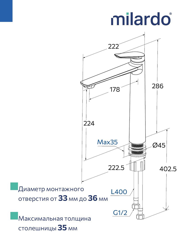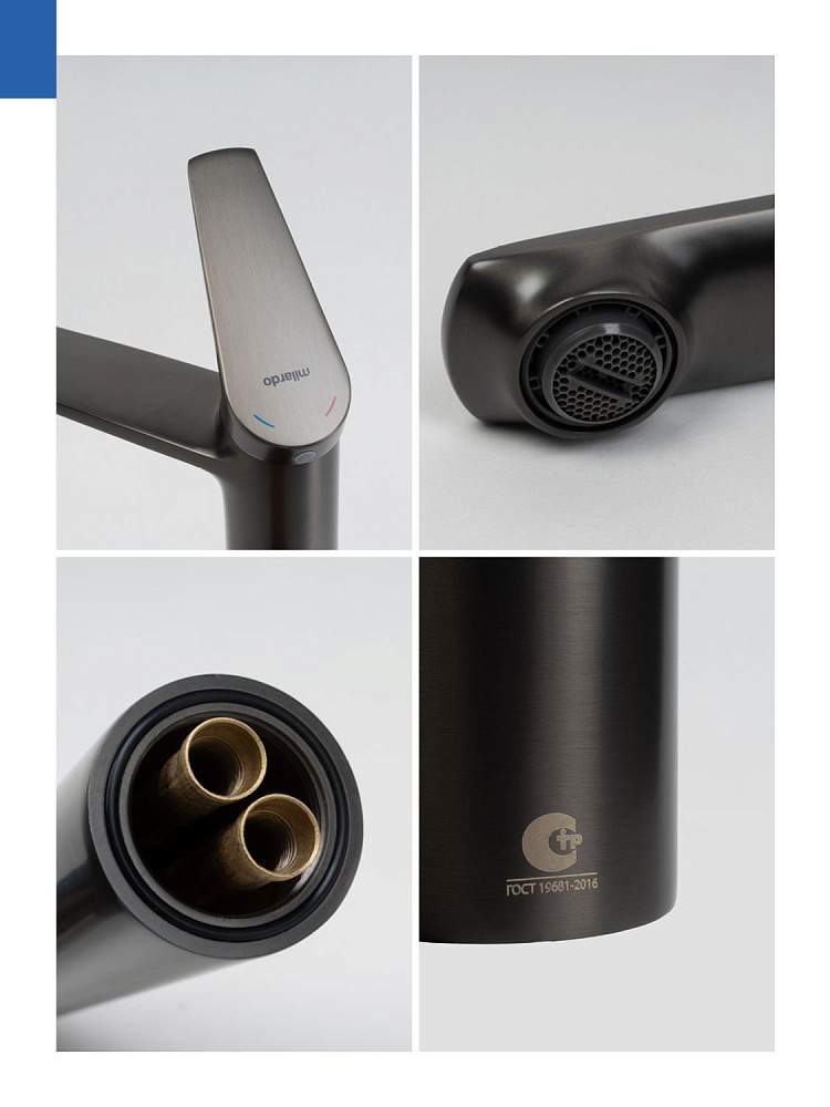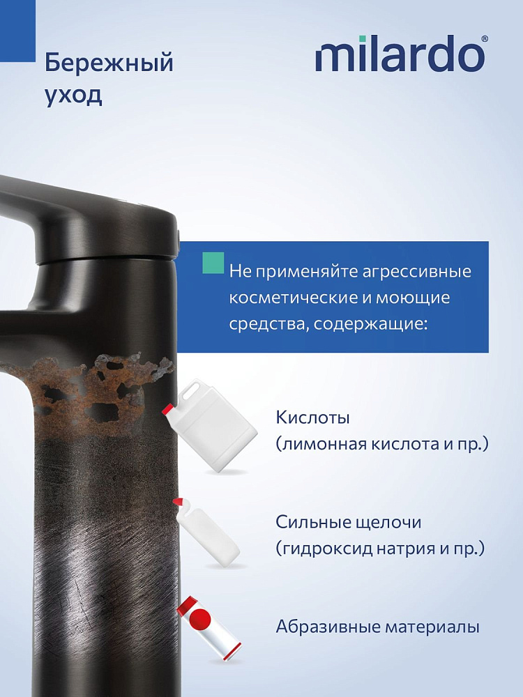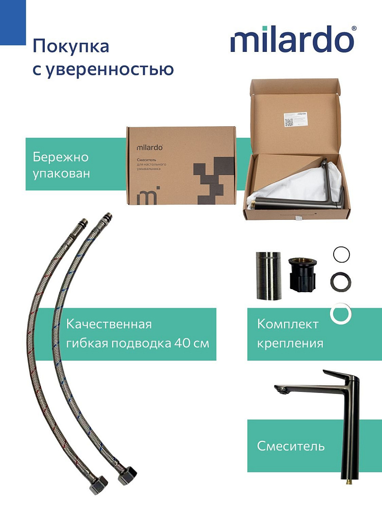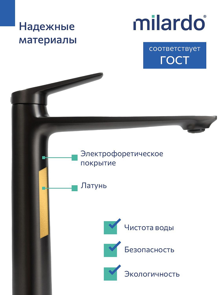 Высокий смеситель для накладной раковины, графит, Milardo, Лип (Leap), LEAGM01M01