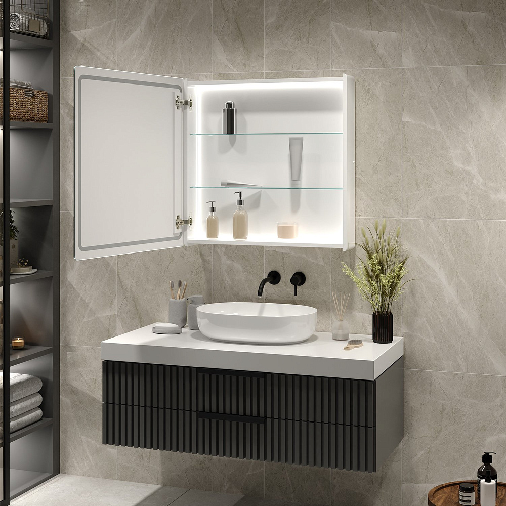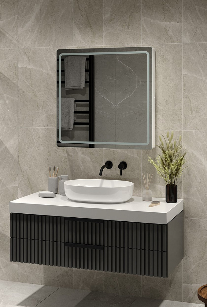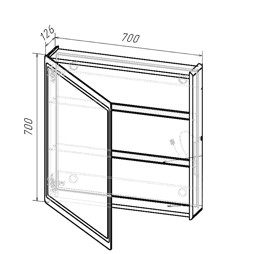 Зеркальный шкаф MIXLINE Симпл" 700*700 (ШВ), механический выключатель, светодиодная подсветка. Корпус зеркала сделан из влагостойкого ДСП и рамки МДФ, белого цвета. Зеркало имеет внутреннюю подсветку, которая обеспечивает идеальное освещение объектов в отражении зеркала. Подсветка включается с помощью механической кнопки на корпусе.