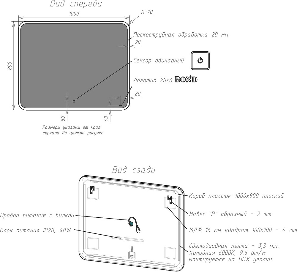Зеркало BOND Cube M39ZE-10080 — это не просто зеркало, а настоящий акцент в вашем интерьере. Оно сочетает в себе высокое качество, стильный дизайн и функциональность. Влагостойкое зеркальное полотно AGC премиум толщиной 4 мм европейского производства по стандарту IP 44 гарантирует долговечность и надёжность зеркала. Оно устойчиво к воздействию влаги и не потеряет своего внешнего вида даже в условиях повышенной влажности. Высокая яркость обеспечивается LED-лентой с плотностью 120 кристаллов на 1 метр. Это означает, что зеркало будет давать яркое и равномерное освещение, которое создаст комфортную атмосферу в вашей ванной комнате или спальне. Сенсорный выключатель с диммером позволяет регулировать мощность освещения простым нажатием пальца. Вы сможете настроить яркость подсветки в соответствии с вашими предпочтениями и создать идеальное освещение для любого случая. С тыльной стороны зеркало надёжно защищено от повреждений и попадания влаги пластиковым коробом. Это обеспечивает долговечность и сохранность зеркала, а также предотвращает возможные проблемы, связанные с попаданием влаги. Холодный тип подсветки добавляет зеркалу современный и стильный вид. Он идеально сочетается с любым интерьером и подчёркивает его элегантность. Зеркало BOND Cube M39ZE-10080 — это не только функциональный предмет, но и стильный аксессуар, который украсит ваш дом и создаст уютную атмосферу. Оно станет отличным выбором для тех, кто ценит качество, стиль и комфорт.
