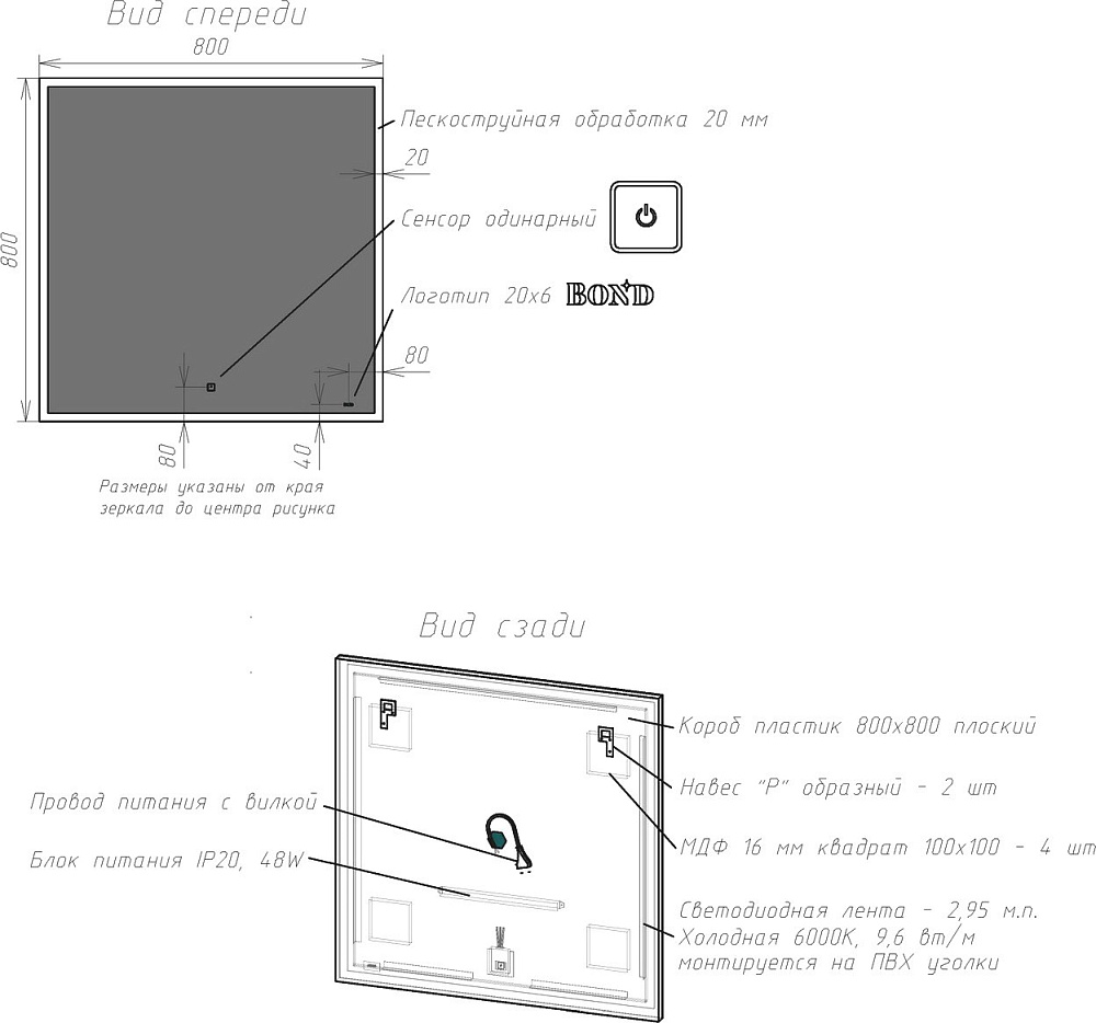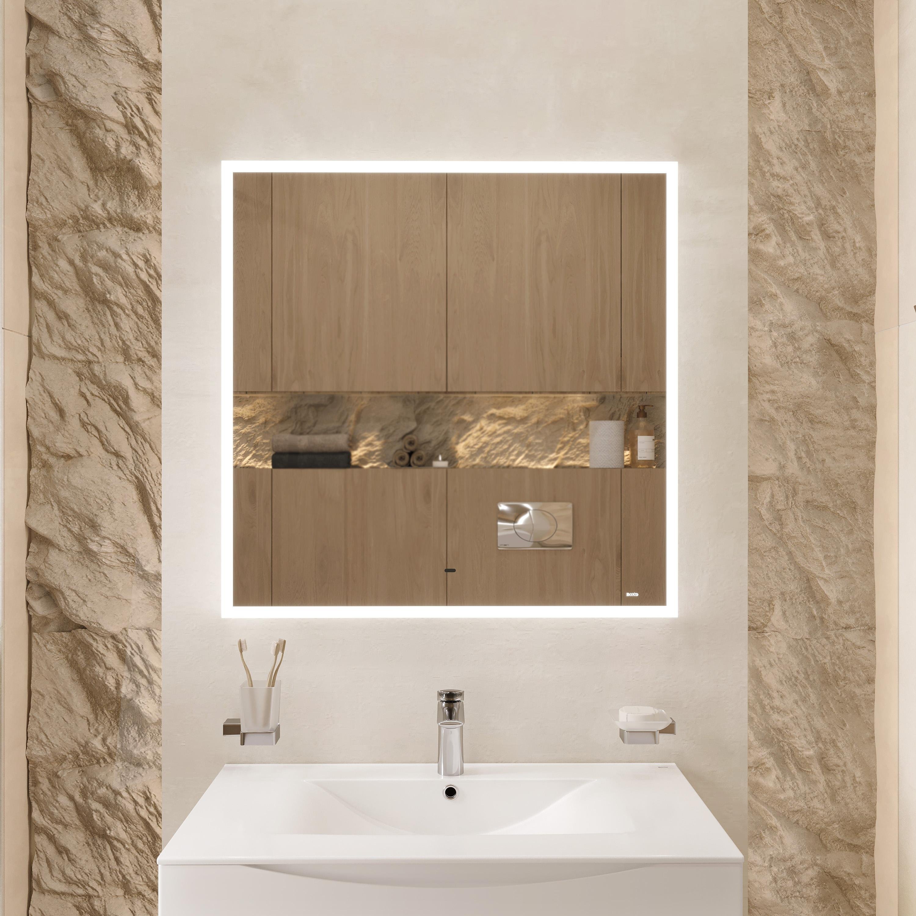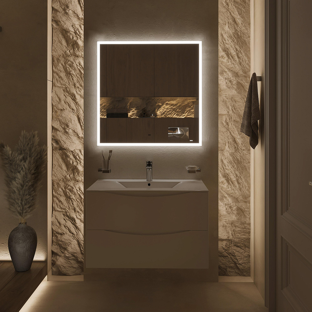 Зеркало BOND Cube M44ZE-8080 80х80 с подсветкой — это не просто зеркало, а стильный и функциональный аксессуар для вашего интерьера. Оно изготовлено из влагостойкого зеркального полотна AGC премиум-класса толщиной 4 мм европейского производства по стандарту IP 44, что гарантирует его долговечность и надёжность. Высокая яркость зеркала достигается благодаря LED-ленте с плотностью 120 кристаллов на 1 метр. Это обеспечивает яркое и равномерное освещение, которое создаёт комфортную атмосферу в помещении. Сенсорный выключатель с диммером позволяет регулировать мощность освещения простым нажатием пальца. Вы можете настроить яркость подсветки в соответствии с вашими предпочтениями и настроением. Тыльная сторона зеркала надёжно защищена от повреждений и попадания влаги пластиковым коробом. Это гарантирует, что зеркало сохранит свой первоначальный вид и функциональность на долгие годы. Холодный тип подсветки придаёт зеркалу современный и стильный вид. Он идеально подойдёт для любого интерьера и станет его изысканным дополнением.