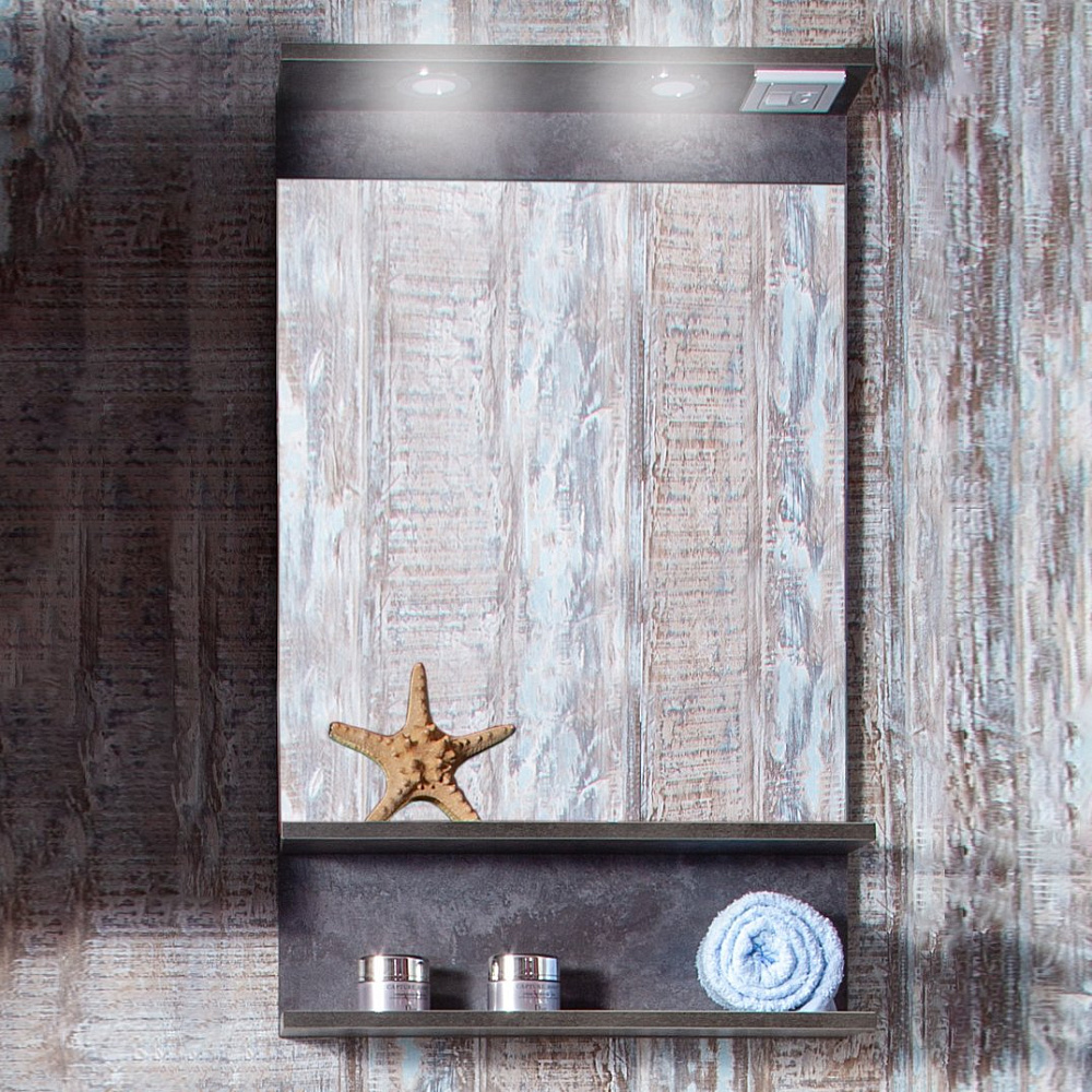 Зеркало Бриклаер Чили 55 цемент, с подсветкой и полкой
