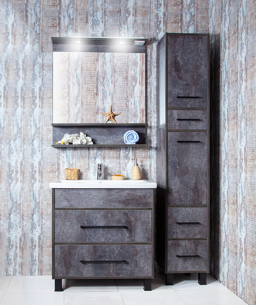 Зеркало Бриклаер Чили 70 цемент, с подсветкой и полкой