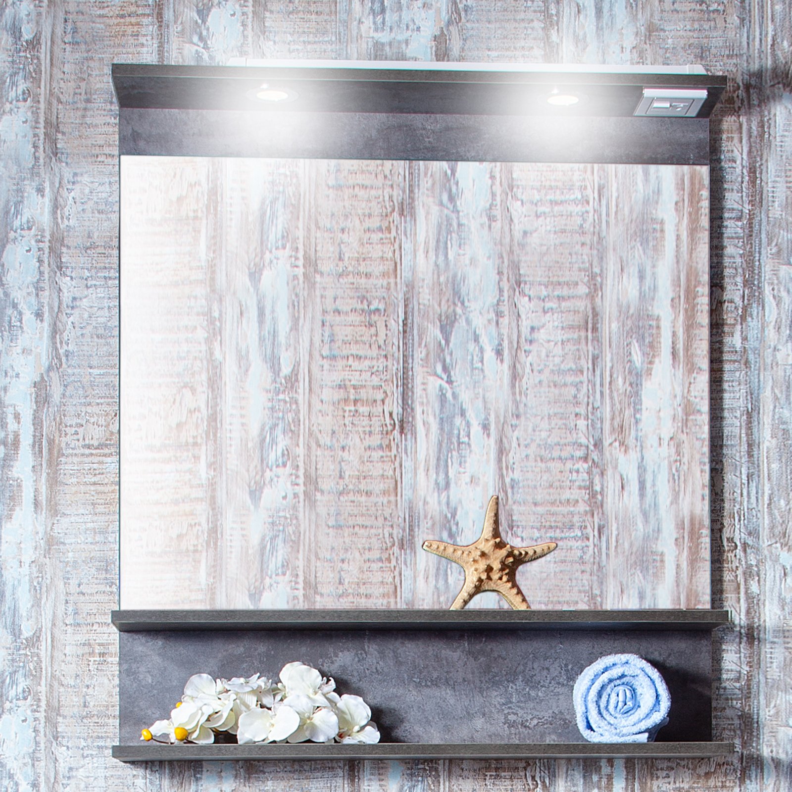 Зеркало Бриклаер Чили 80 цемент, с подсветкой и полкой