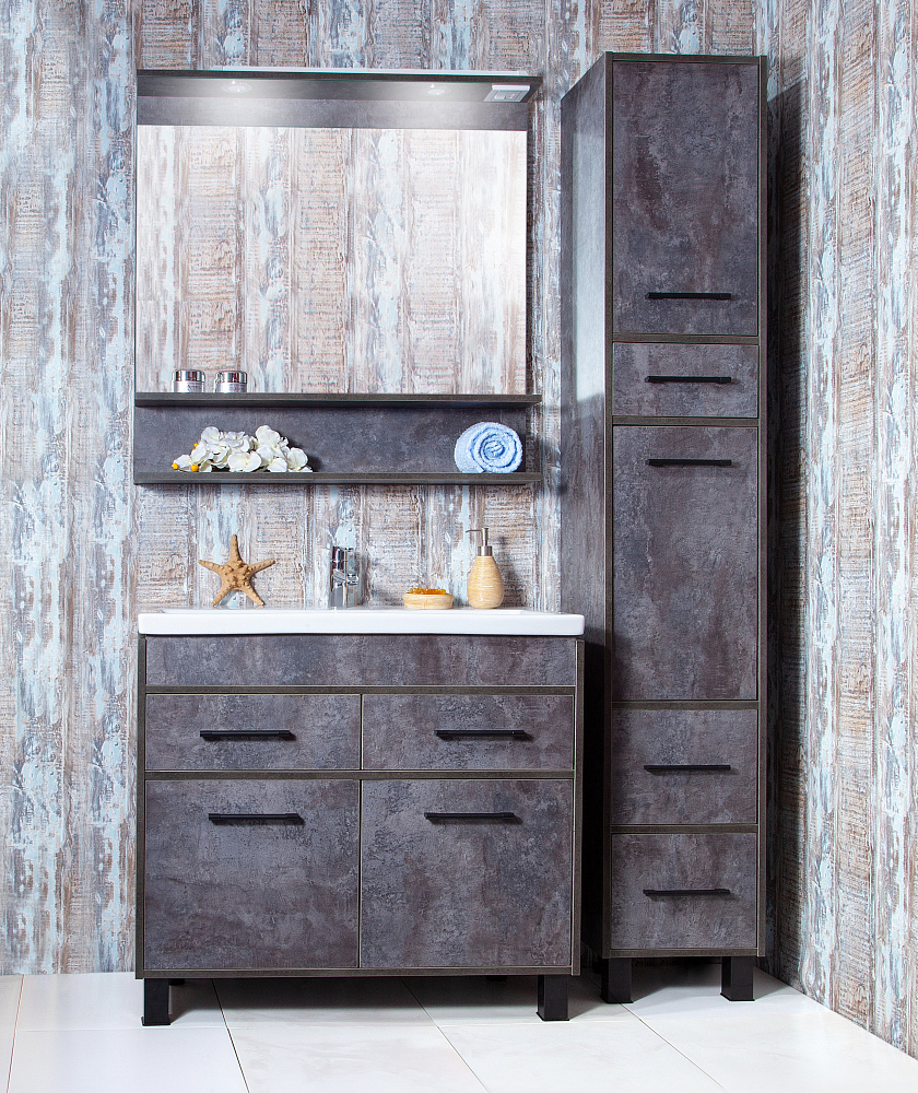 Зеркало Бриклаер Чили 90 цемент, с подсветкой и полкой
