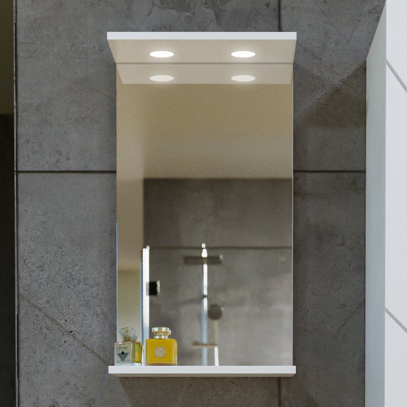 Зеркало Бриклаер Кристалл 40 белое, с подсветкой и полкой