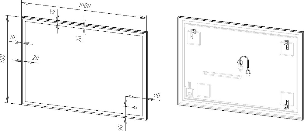 Зеркало DIWO Дмитров 100x70 см, подсветка LED, сенсорное, с регулировкой яркости подсветки, универсальный монтаж, прямоугольное