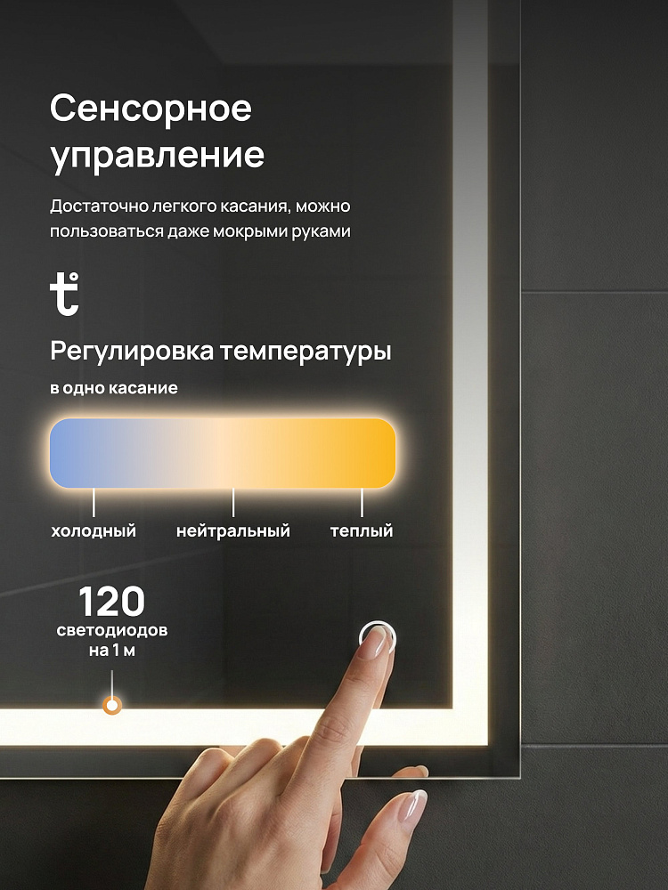 Зеркало DIWO Дмитров 100x80, 3 цвета подсветки, реверсивное