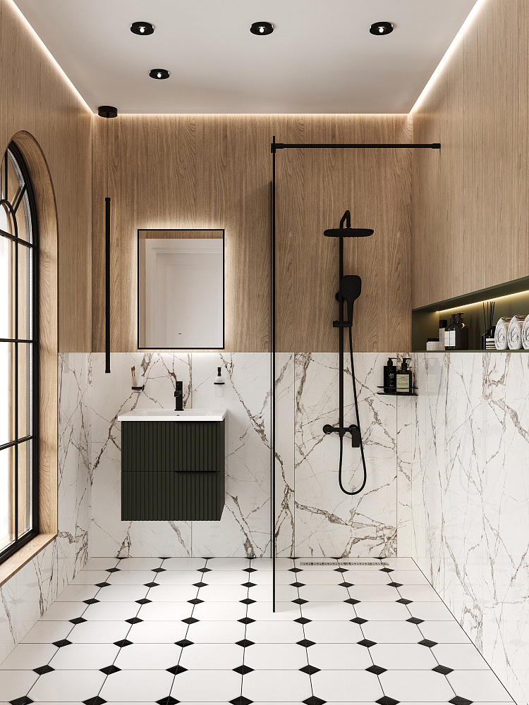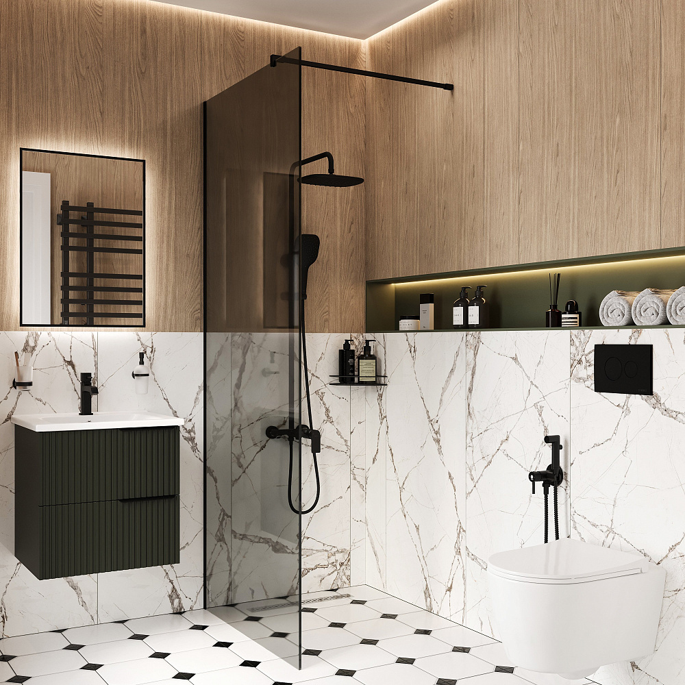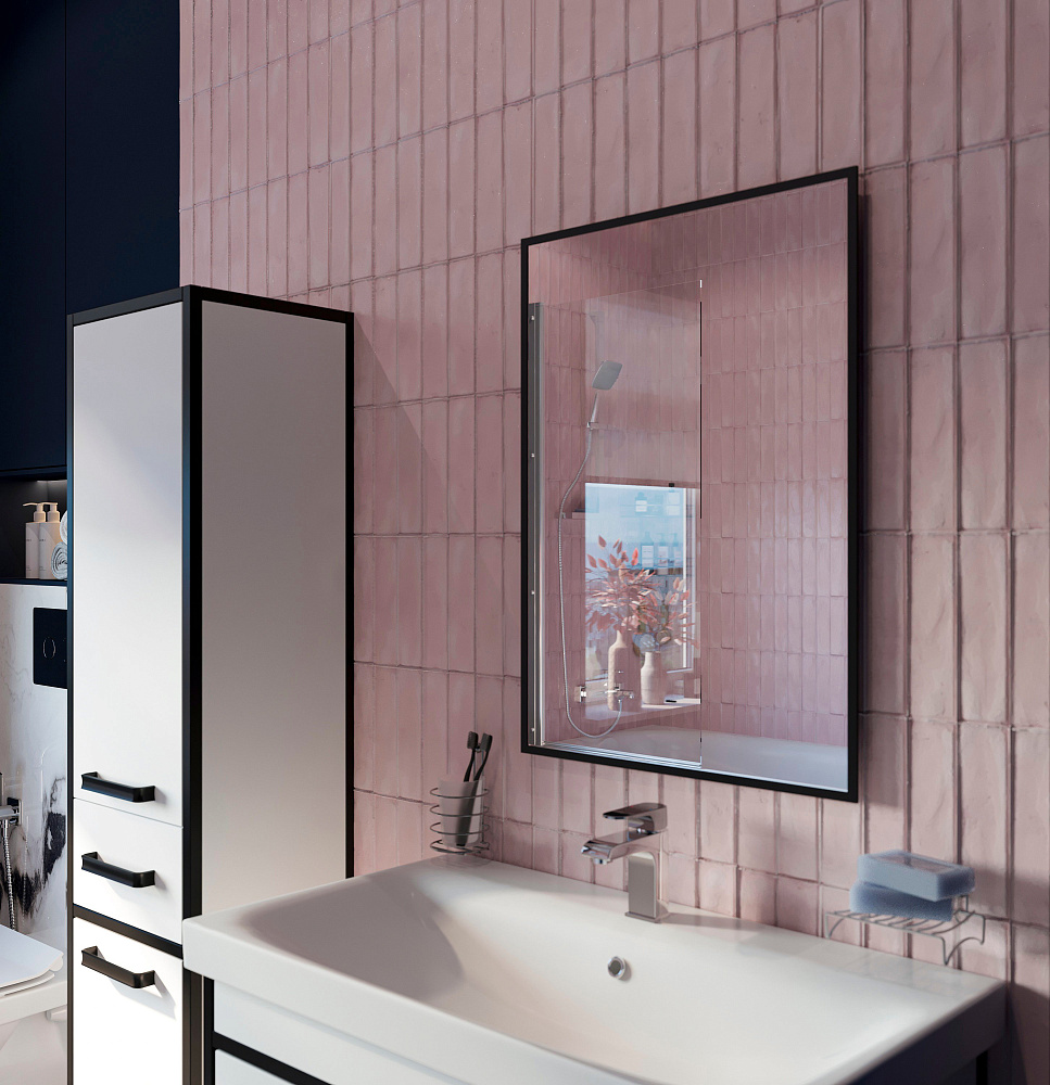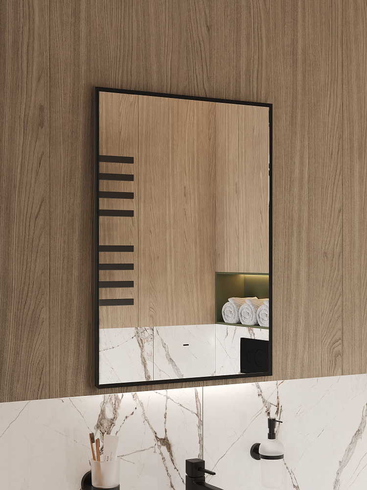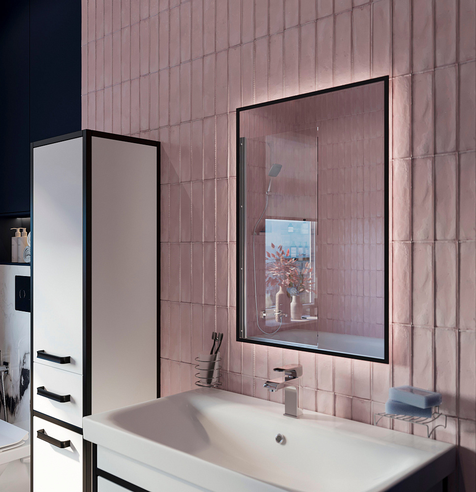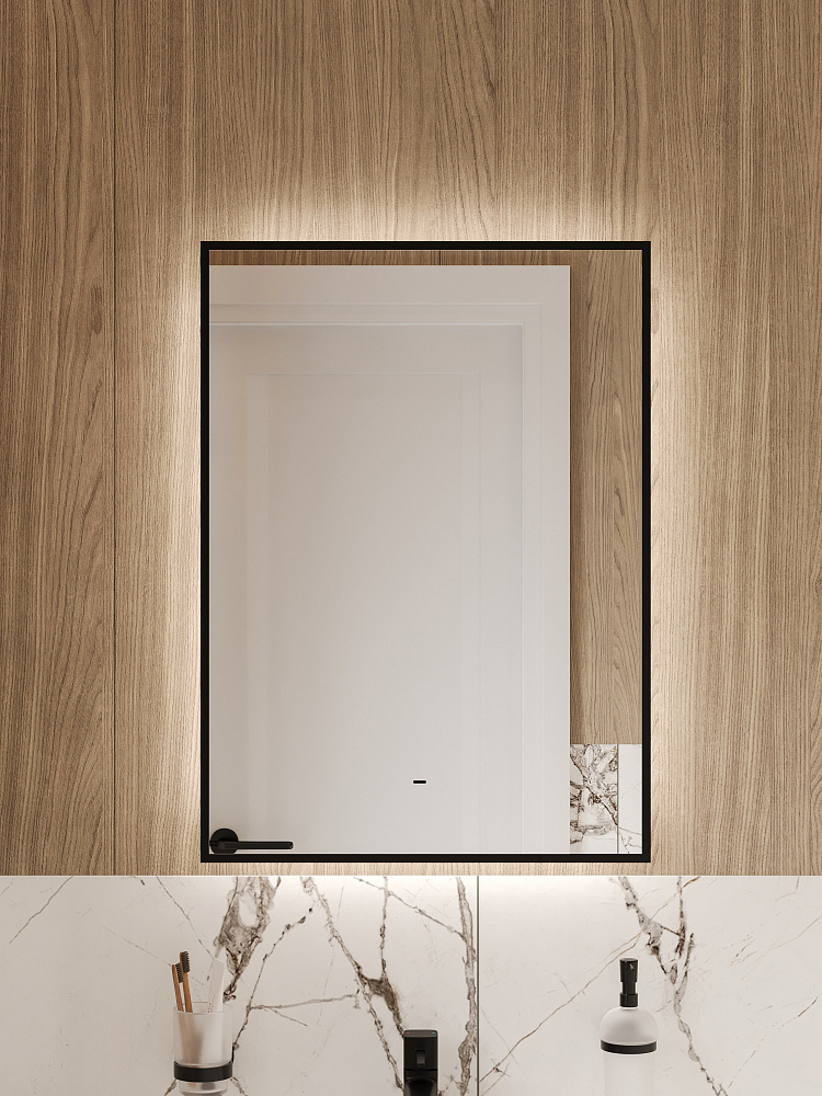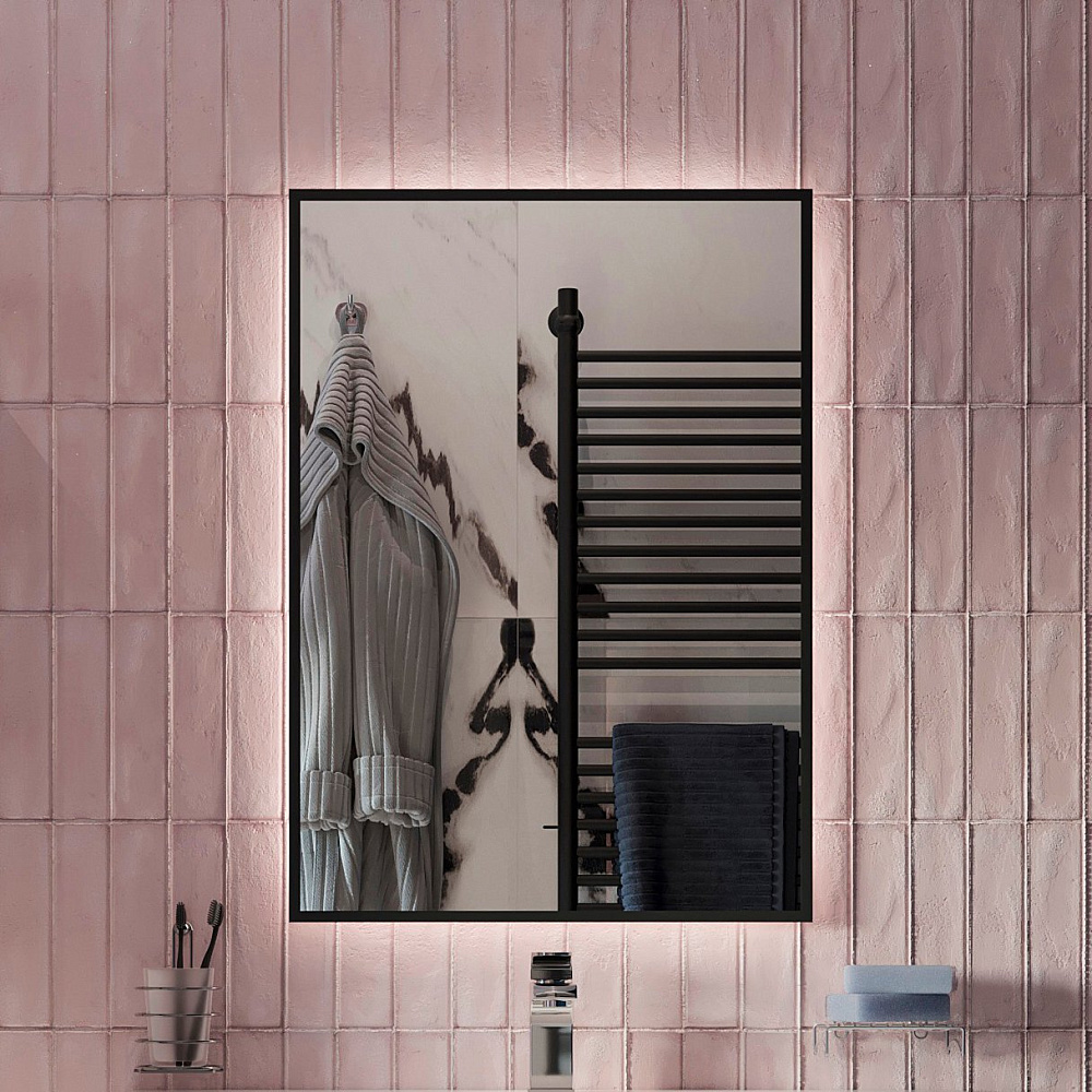 Зеркало DIWO Элиста 50x70 см, ореольная подсветка LED, бесконтактный выключатель, прямоугольное, черная окантовка