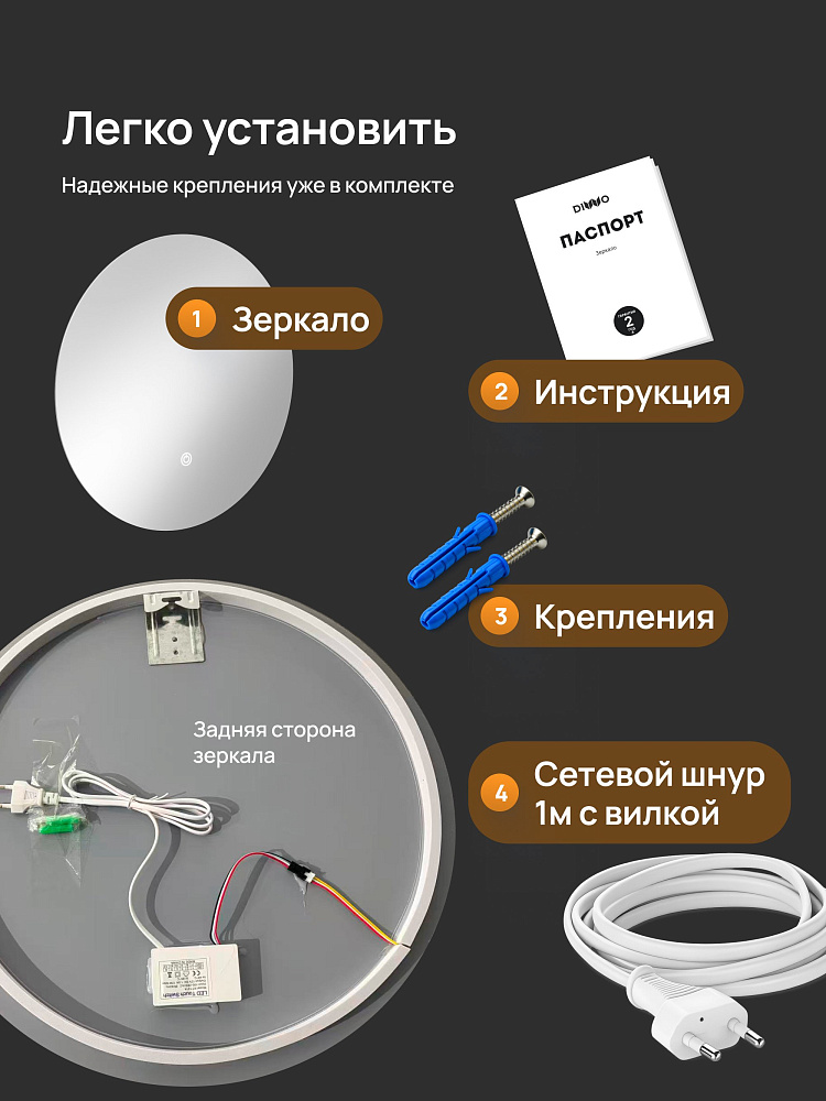 Отзывы о Зеркало круглое DIWO Воронеж 50 3 цвета подсветки