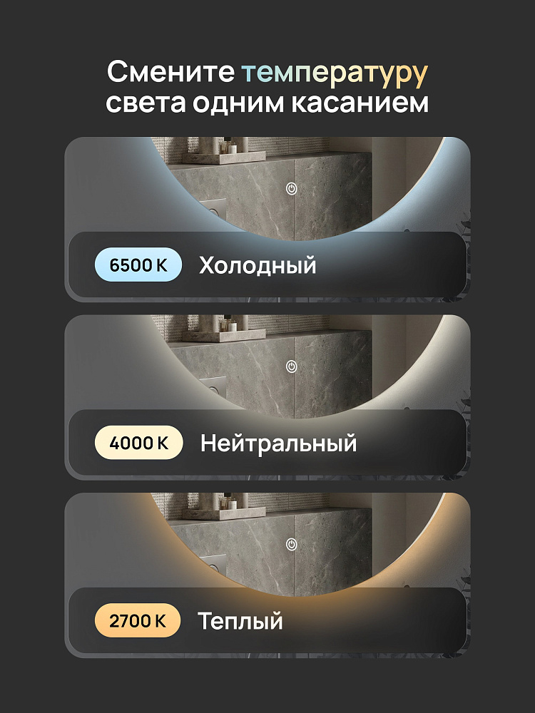 Зеркало круглое DIWO Воронеж 50 3 цвета подсветки