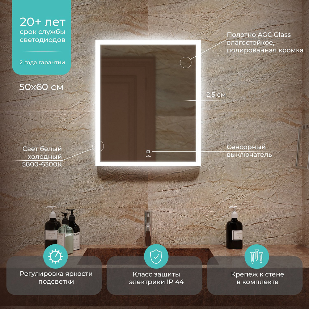 Отзывы о Зеркало MIXLINE "Норма" ЭКОНОМ 500*600 (ШВ) сенсорный выкл, светодиодная подсветка, универс.крепеж