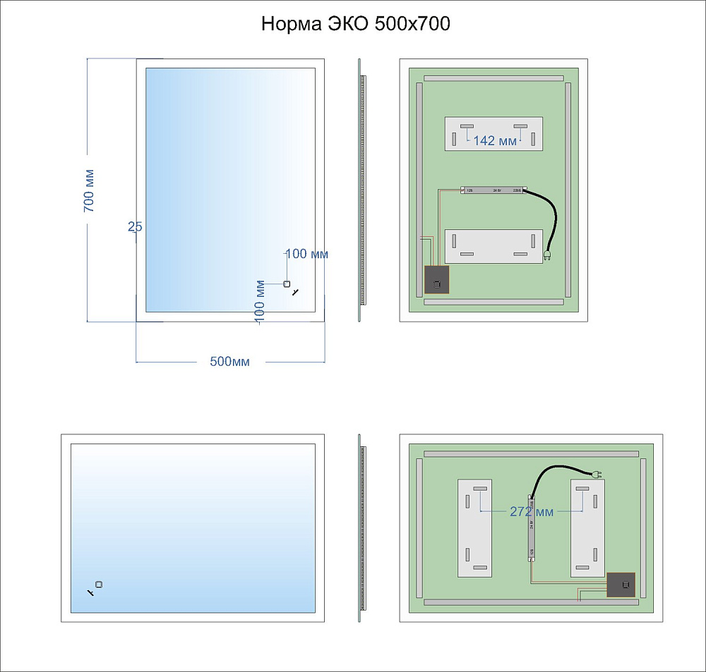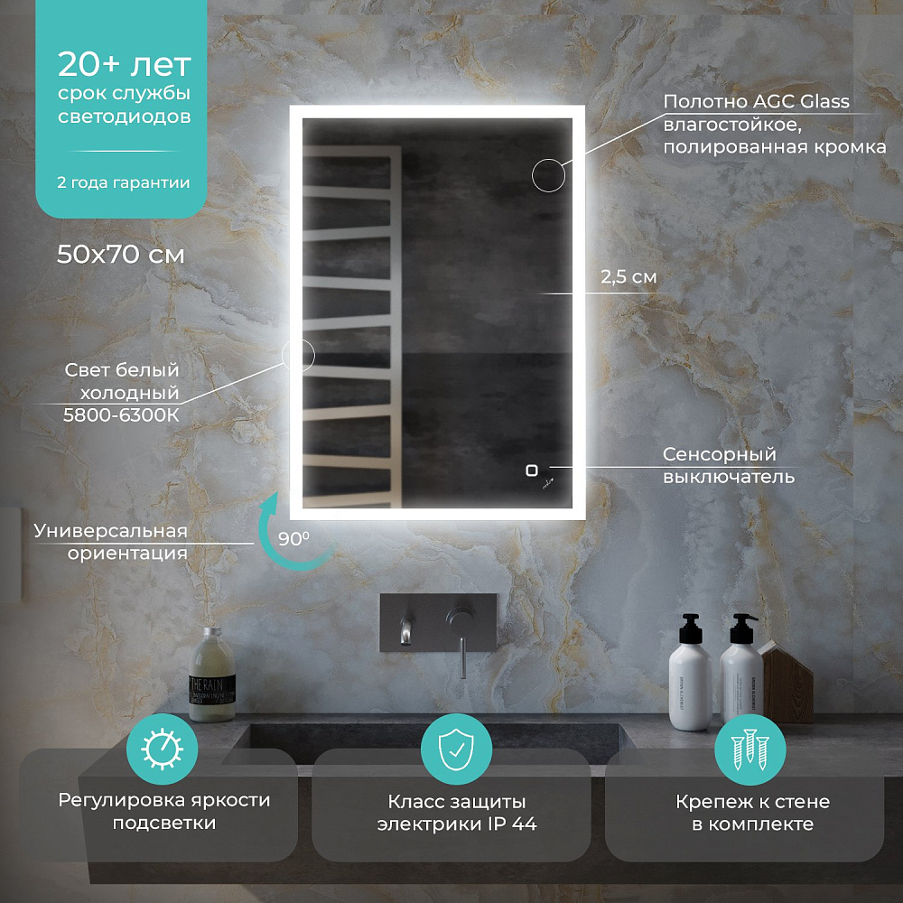 Отзывы о Зеркало MIXLINE "Норма" ЭКОНОМ 500*700 (ШВ) сенсорный выкл, светодиодная подсветка, универс.крепеж