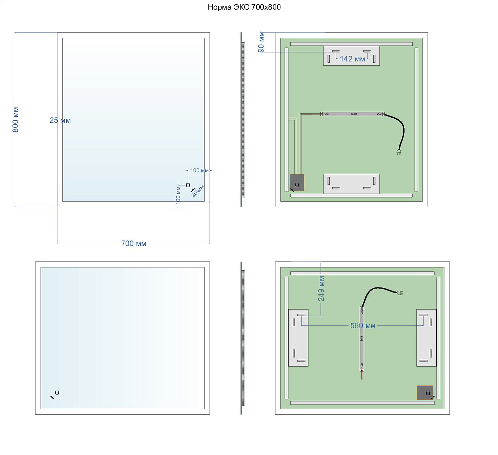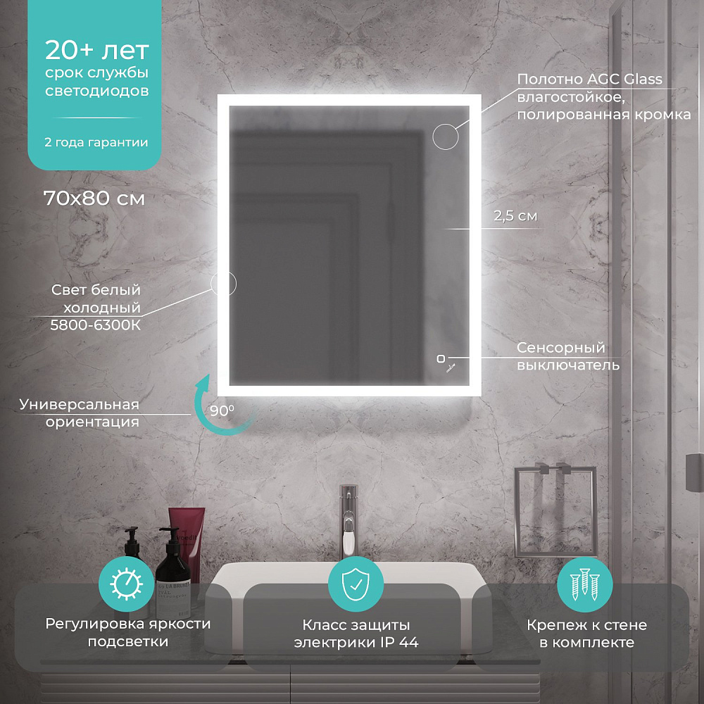 Элегантное прямоугольное зеркало «Норма» с интегрированной светодиодной подсветкой – это современное решение для ванной комнаты, прихожей или любой другой зоны, где важны комфорт и эстетика. Модель оснащена сенсорным выключателем, функцией диммера для регулировки яркости и универсальным креплением, что делает её не только стильным, но и максимально удобным аксессуаром.