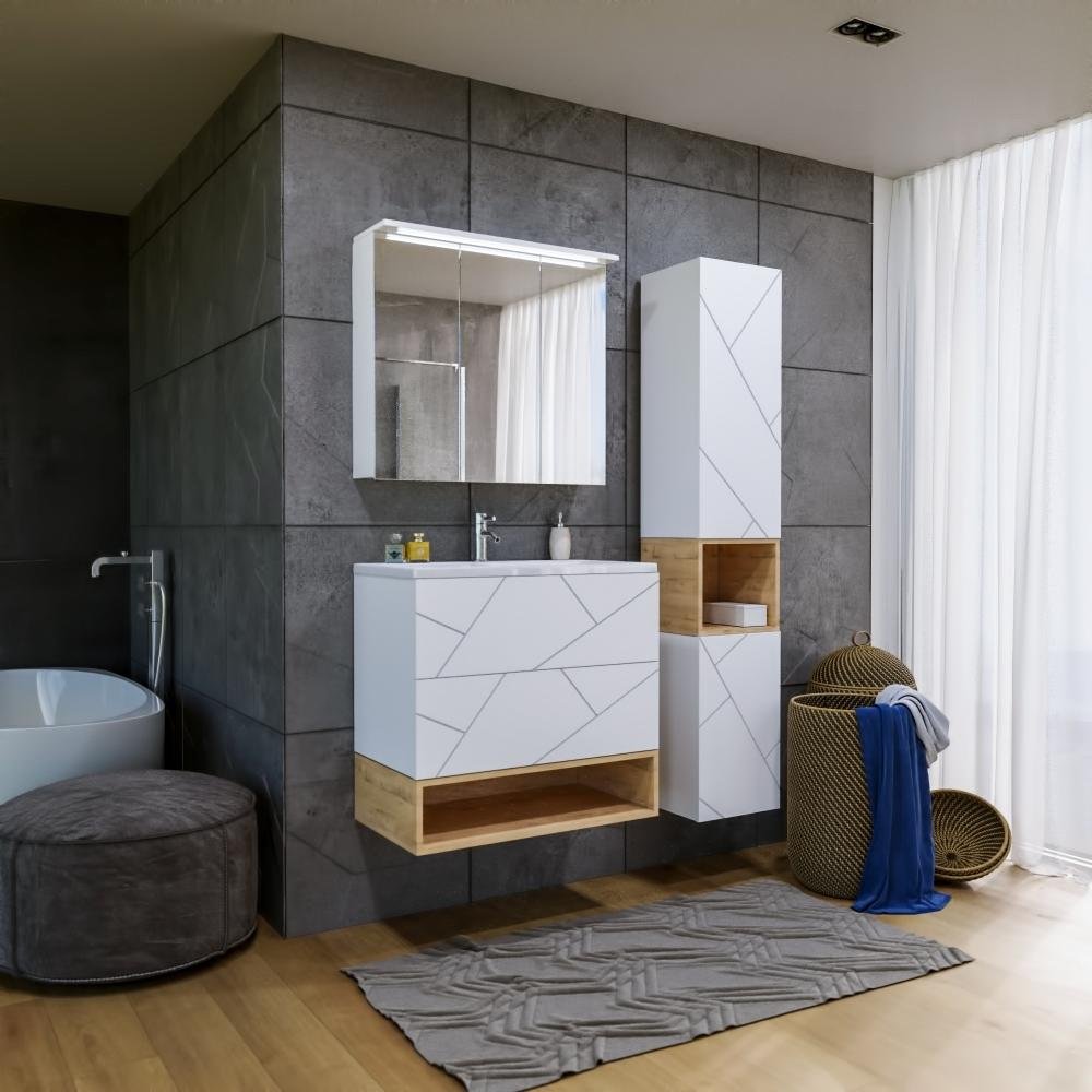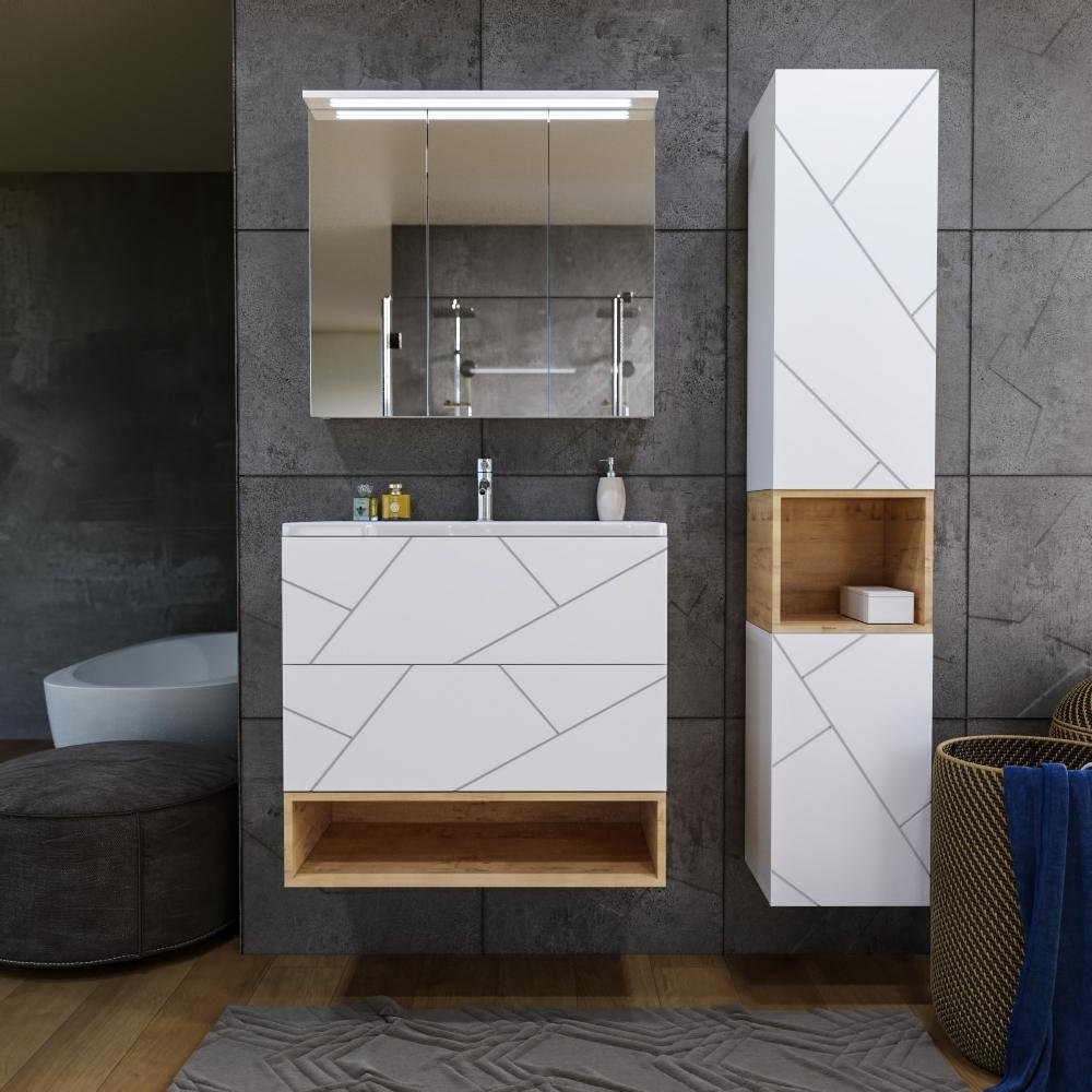 Зеркало-шкаф Бриклаер Кристалл 75 белое, с подсветкой